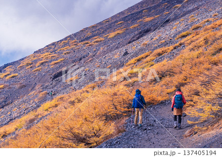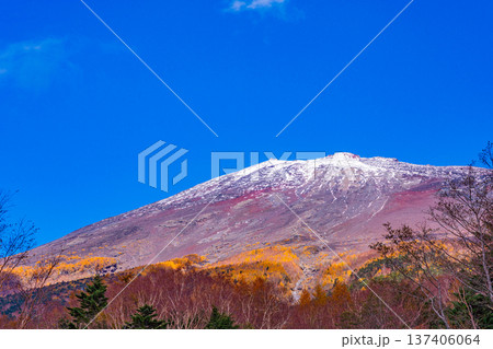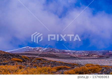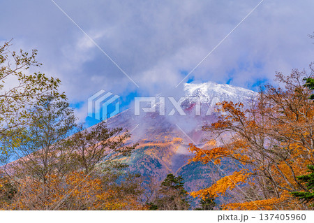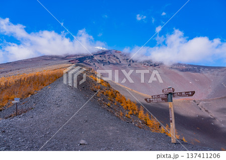 (静岡県)富士山・富士宮口五合目から望む山頂 紅葉と冠雪