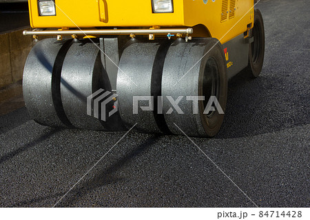 舗装工事イメージ アスファストを平らに均すローラー車