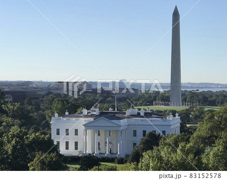 アメリカ、ホワイトハウス/俯瞰、正面と、ナショナルモニュメント。