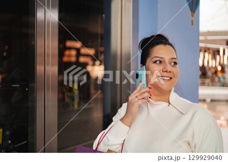 Sustainable joy. Young woman smiling while on the phone, embracing a sustainable lifestyle.