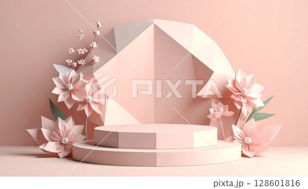 Beige cylindrical podium for product presentation on a minimalist background. Eps 10