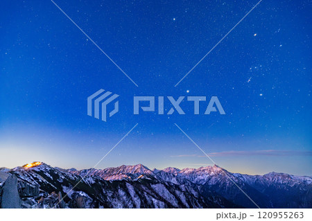 北アルプス 夜明け前の夜空