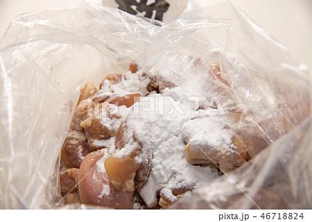 鶏の唐揚げの下ごしらえでポリ袋に入れて混ぜたシーン