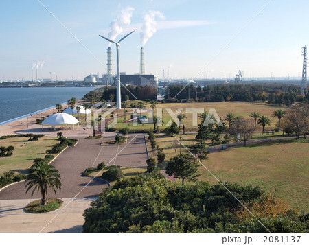 袖ヶ浦海浜公園から火力発電所を望む(千葉県袖ケ浦市)