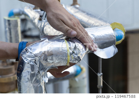 配管の保温作業