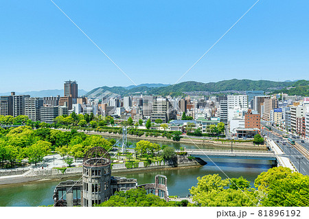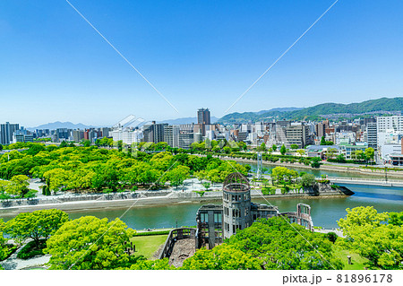 広島県広島市 晴天の原爆ドームと広島の街並み