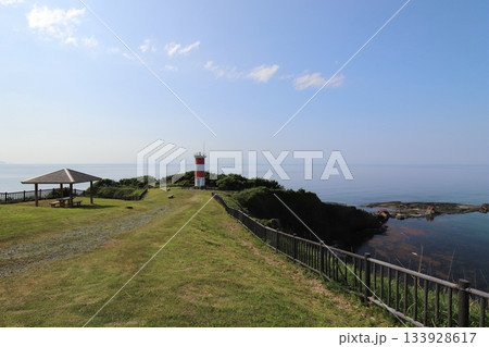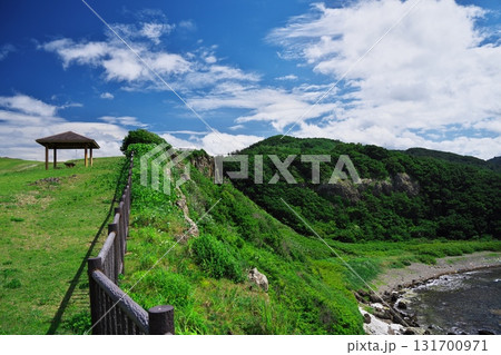 夏の津軽半島 高野埼の遊歩道と東屋から袰月海岸を望む
