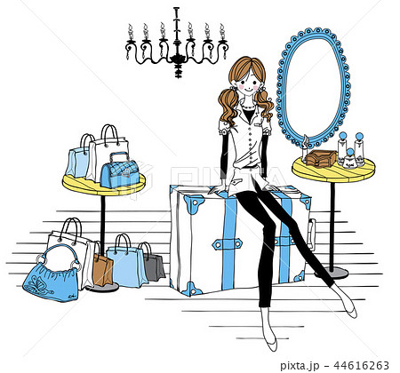 ファッションを楽しむスタイリッシュな大人の女性 カジュアルな服装の全身イラスト 手描きの人物イラスト