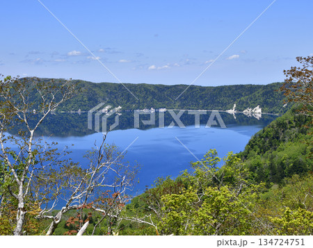 新緑に囲まれた裏摩周湖