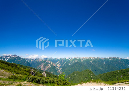 初夏の北アルプス 槍ヶ岳と裏銀座の山並み