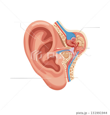 Human Ear Anatomy Vector Illustration Showing Ear Structure and Inner Components