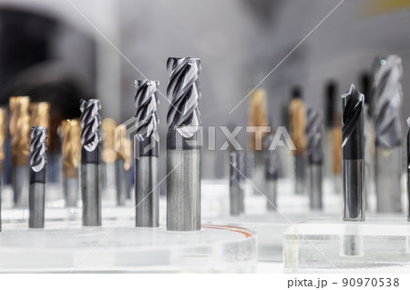 The hole tool in the tool magazine of machining center in the blue tone scene.