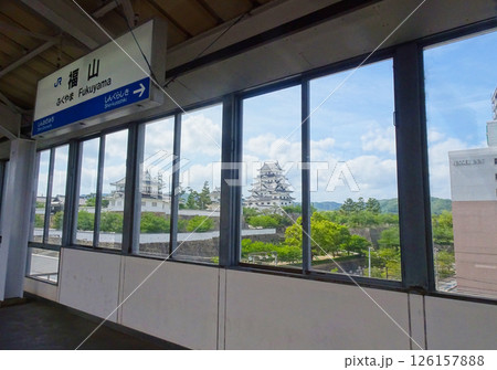 福山駅の新幹線ホームから望む福山城(広島県福山市)