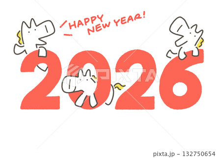 2026のロゴと3匹の白馬の年賀状 正月素材 年賀シンボル