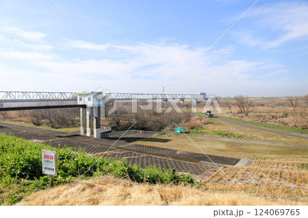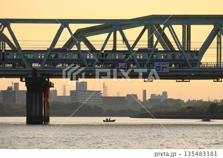 東京都北区赤羽と埼玉県川口市をつなぐ荒川にかかる鉄橋の風景