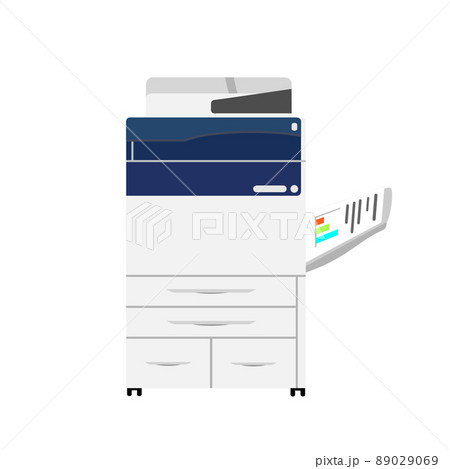 【ビジネス】複合機のイラスト。コピー、プリント、スキャン、ファックスの機能を兼ね備えたオフィス機器。