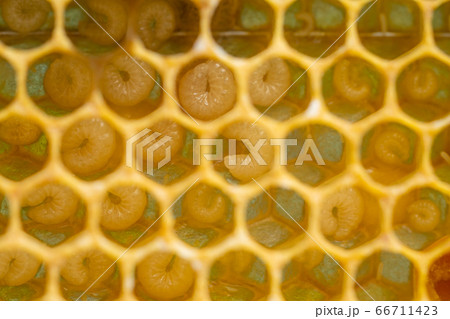 Background of bee honeycombs with larvae in a hive