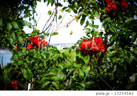 自然 植物 カエンボク、沖縄では露地植え。庭木や街路樹になっています