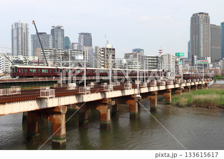 新淀川橋梁を渡る阪急電車(大阪府大阪市淀川区)