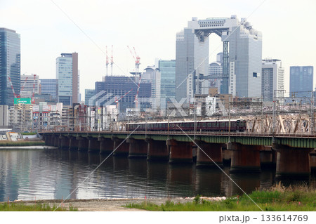 淀川河川公園から望む阪急電車(大阪府大阪市淀川区)