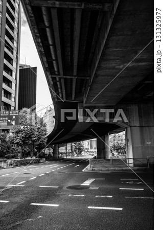 都心の交通 第2京浜と首都高速2号目黒線 戸越 2025.09 b-6 モノクロ