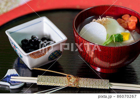 白味噌のお雑煮イラスト 餅 正月 冬 食べ物 水彩 手描き イラスト素材