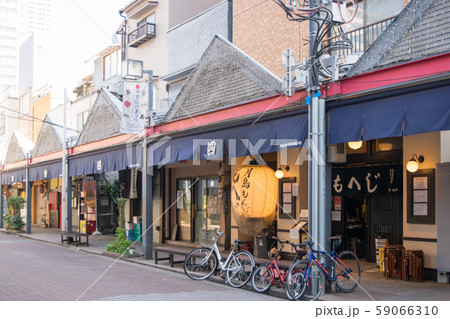 東京都 月島もんじゃストリート 西仲通り商店街 路地風景