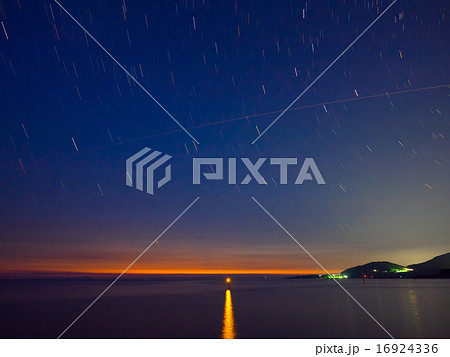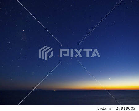 東シナ海に沈む金星と国際宇宙ステーションの航跡_2016/10/1
