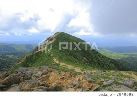 東北飯豊連峰 飯豊山頂の風景 本山小屋遠景