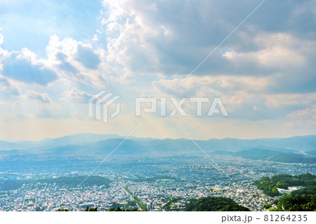愛媛県四国中央市 翠波西峰展望台から土居町、瀬戸内海の島々を望む