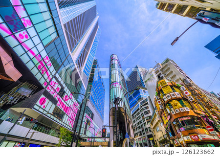 日本の東京都市景観 渋谷サクラステージSHIBUYAタワーや渋谷ストリームなどを望む