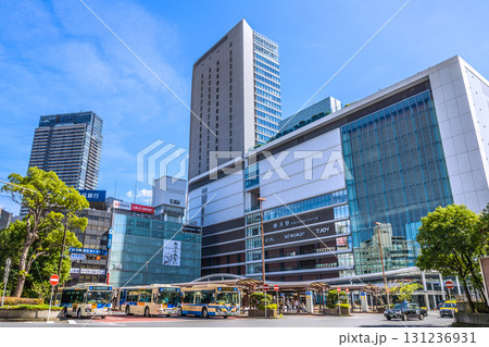 日本の横浜都市景観 横浜駅・JR横浜タワー前の横浜モアーズなどを望む=21日