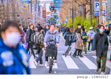 日本の東京都市景観 外国人観光客らで賑わう秋葉原の歩行者天国。なぜか危険運転自転車横行…=2月18日