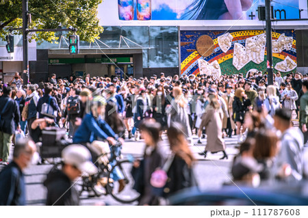 日本の東京都市景観 危険運転自転車増加…コロナ禍前のように賑わう渋谷…マ姿、減少へ=18日