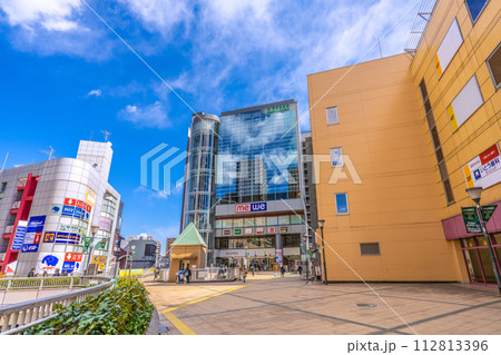 日本の相模原市都市景観 橋本駅前や太陽光など望む…希望の光…