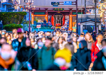 日本の東京都市景観 年の瀬。暖かな日差し…外国人観光客らで賑わう浅草寺。まるで人種のるつぼ…=20日