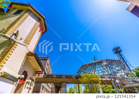 日本の横浜都市景観 横浜市営地下鉄 中川駅(副名称・東京都市大横浜キャンパス前)出入口などを望む