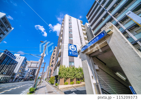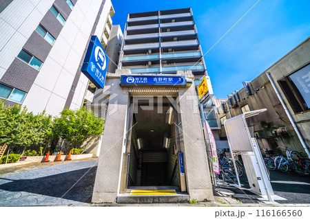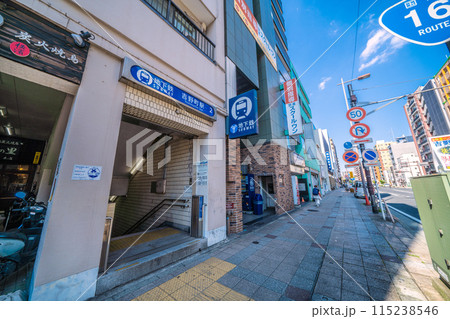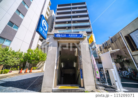 日本の横浜都市景観 横浜市営地下鉄ブルーライン 吉野町駅出入口1などを望む=6月4日