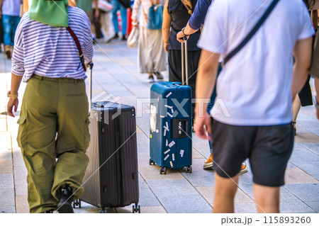 日本の東京都市景観 インバウンド復活…スーツケースを持った外国人観光客の姿も=銀座・ホコ天実施日