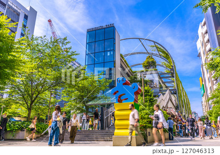 日本の東京都市景観 熱中症対策…インバウンド復活…外国人観光客らで賑わう渋谷=11日、20時17分