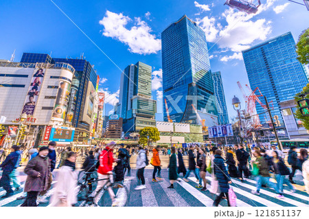 日本の東京都市景観 師走、朝の日差し…大混雑する渋谷スクランブル交差点…新時代に幸あれ=7日、渋谷
