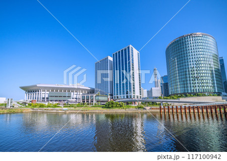 日本の横浜都市景観 みなとみらいのKアリーナなどを望む=令和6年8月7日