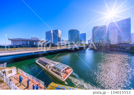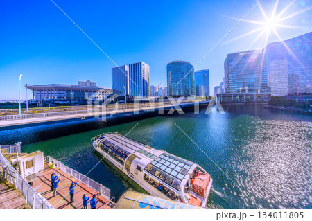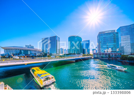 日本の横浜都市景観 Kアリーナやヒルトン横浜、シーバス(水上バス)などを望む。新時代の到来…