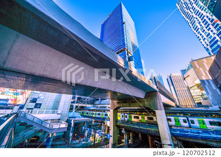 日本の東京都市景観 早朝・渋谷マークシティや京王井の頭線渋谷駅などを望む=11月9日、6時50分