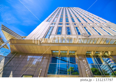 日本の横浜都市景観9月25日。横浜ベイシェラトンホテル&タワーズや窓ガラスに映る横浜駅などを望む