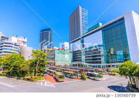 日本の横浜都市景観 横浜駅前。横浜ファーストビルや横浜市営地下鉄出入口などを望む