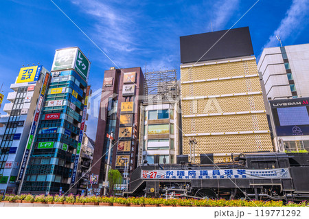 日本の東京都市景観 新橋駅・新橋SL広場前のSL(投票日7月20日(日)参議院議員選挙…)=7月4日