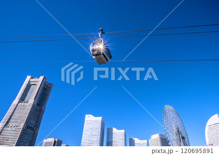 日本の横浜都市景観 11月。ロープウェイを望む。左はYOKOHAMA AIR CABIN桜木町駅方向