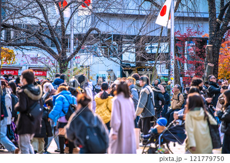 日本の東京都市景観 大晦日…外国人観光客らで大混雑する渋谷駅前…高齢者のマ姿が…。奥は渋谷駅=31日