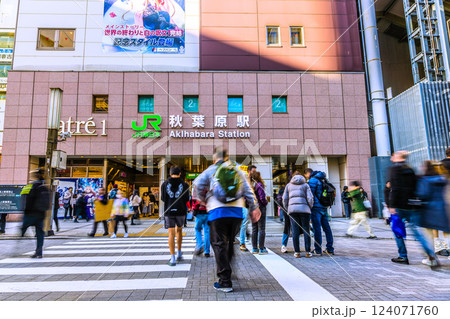 日本の東京都市景観 2月。(外国人観光客らで賑わう)ラジオ会館がある秋葉原駅・電気街改札=5日